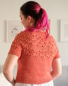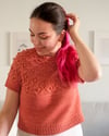 - The tee is knit from the top down seamlessly in the round with the yoke.