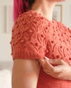 This design features a yoke inspired by the intricate shapes of the gooseberry plant. Its traveling stitches and cables mirror the graceful flow of leaves and vines around the delicate berry-like nupps.