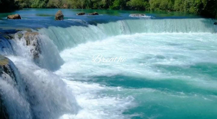 You can do breathing exercises while watching this waterfall wallpaper on your computer for instant stress relief anywhere even at work. This animated wallpapers has breathe written in cursive.