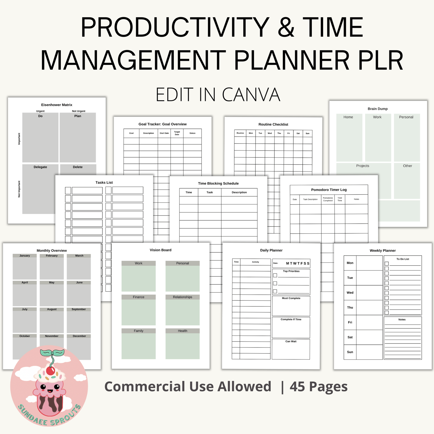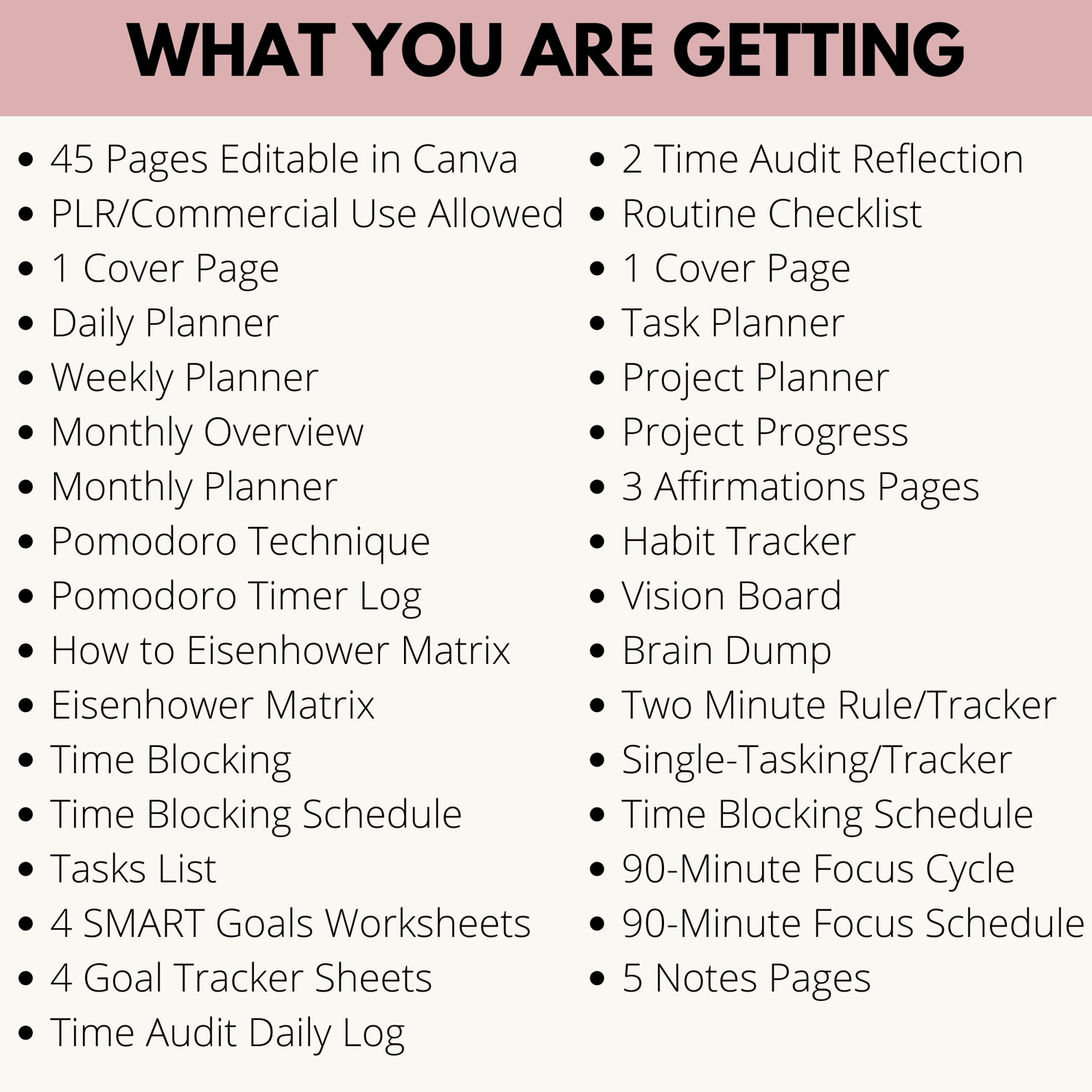 This Productivity and Time Management Planner is perfect for you to use or sell to your audience!