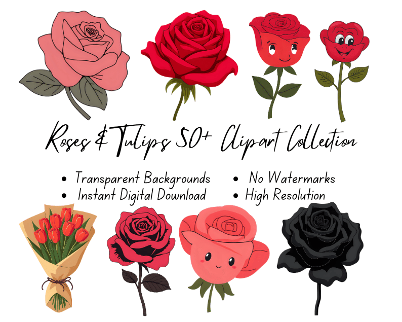 Roses & Tulips 50+ Clipart Collection | High-Resolution Digital Printables | Instant Download | No Watermark