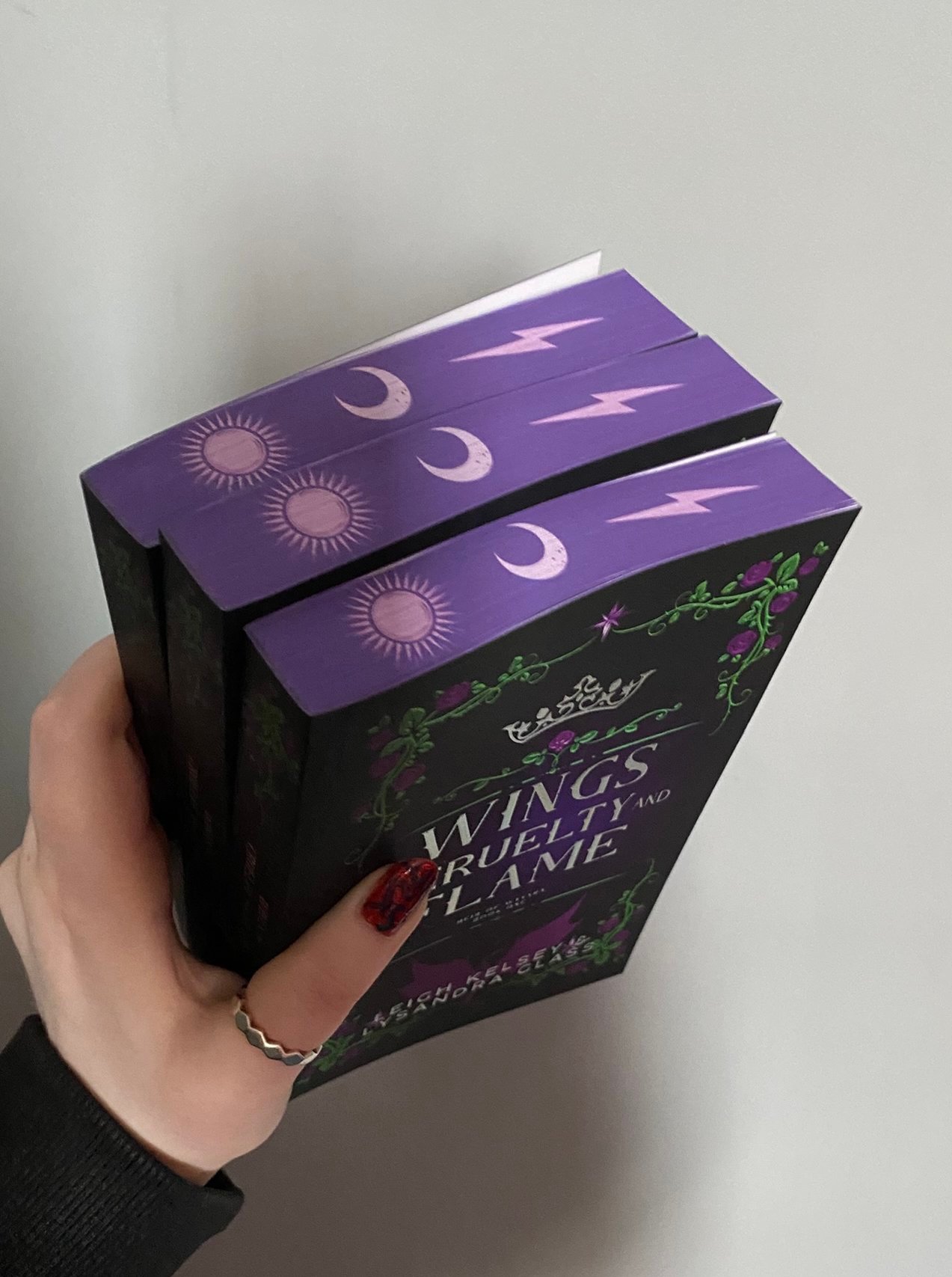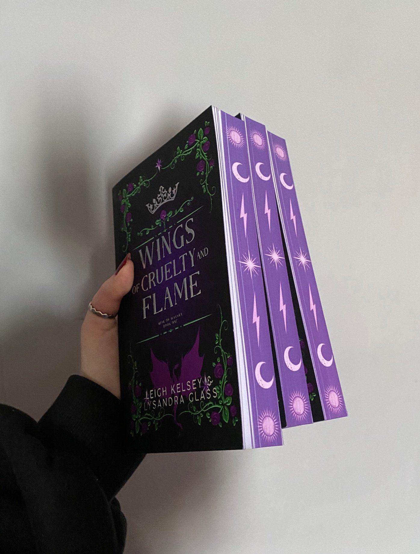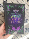 A special edition paperback of Wings of Cruelty and Flame, signed by the authors, with shipping to UK, USA, Canada, and Australia! Comes with three double-sided bookmarks, a reversible A5 art print, character cards, and three stickers.