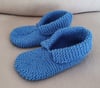 These 12ply Slippers with a fold down cuff are knitted in easy garter stitch. Worked in one piece, they knit up quickly and are warm and squishy to wear.