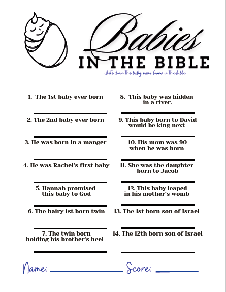 Add a biblical twist to your baby shower! Fun, educational, and easy to print, it's the perfect addition to your celebration!