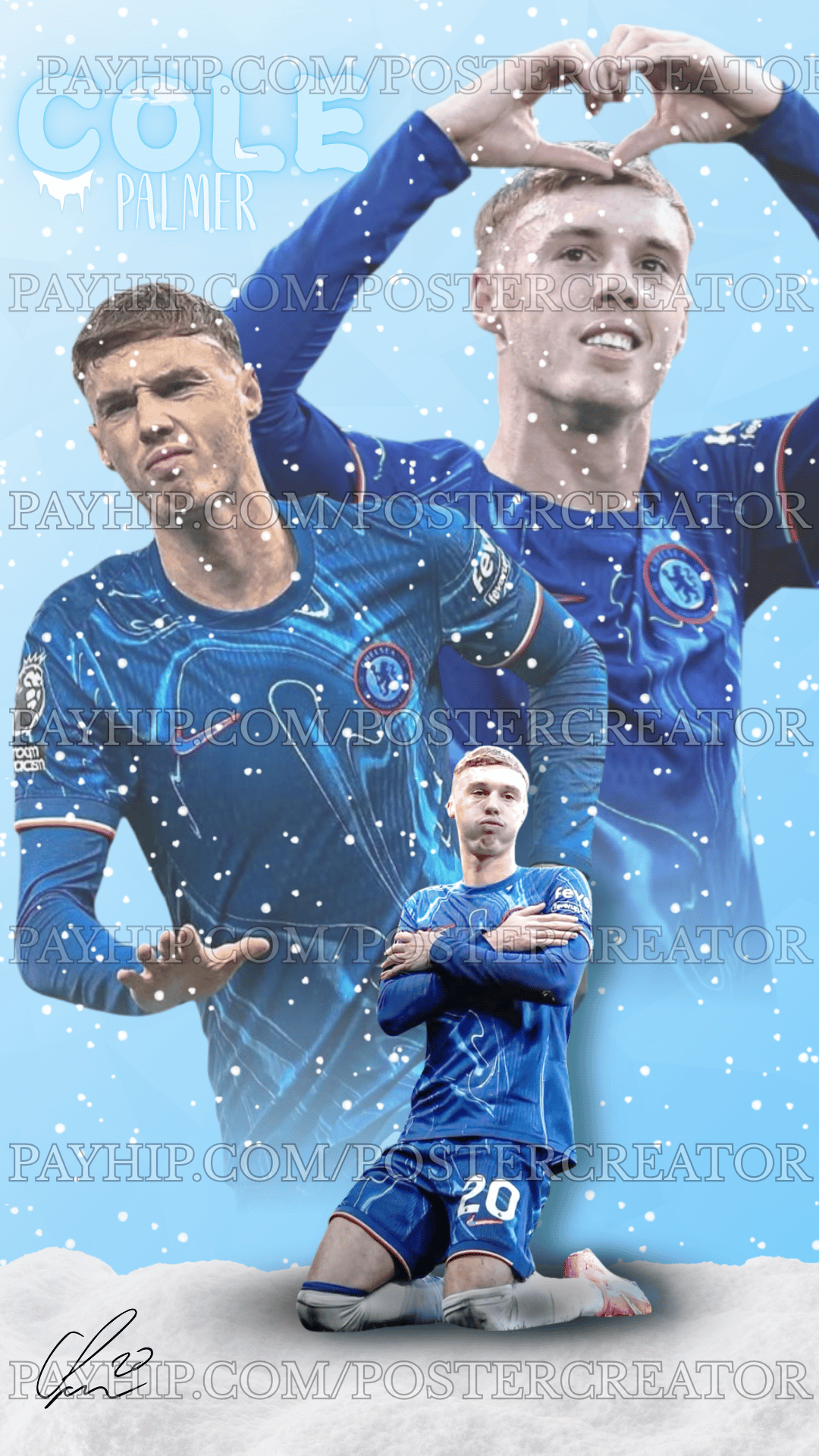Captura la esencia de la nueva estrella del Chelsea con este póster dinámico de Cole Palmer. El diseño, con un efecto invernal y tonos azules helados, simboliza la calma y la precisión con la que el jugador ejecuta sus movimientos.