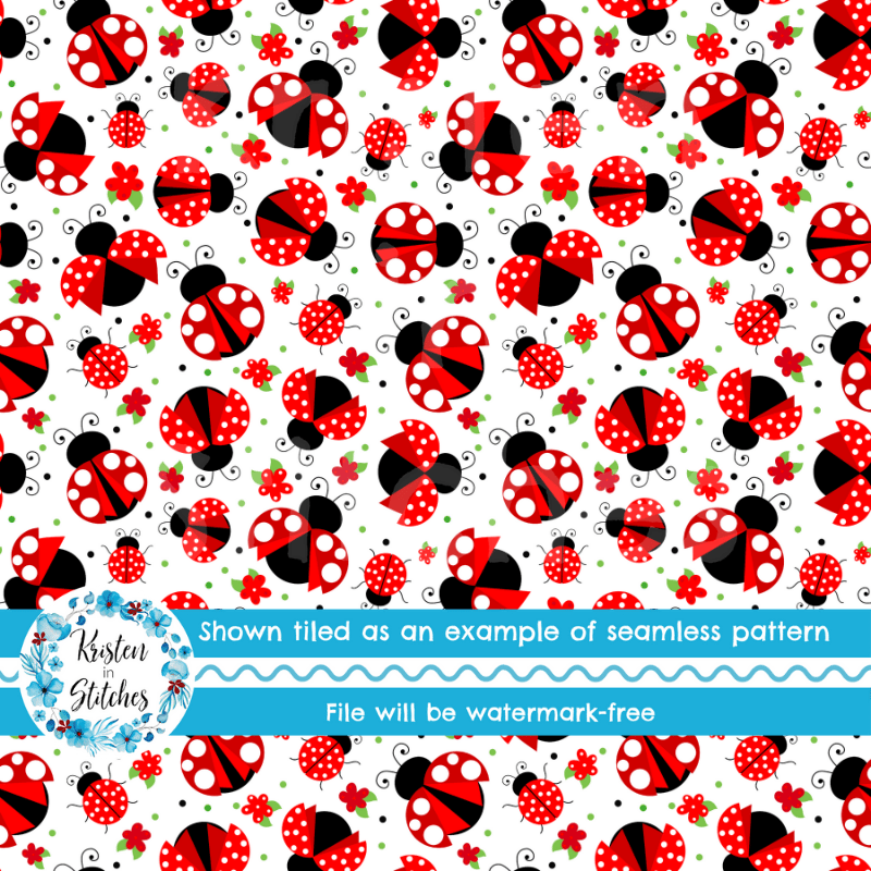 Red Ladybugs Seamless Pattern, Spring Love Bug
