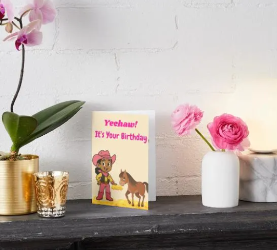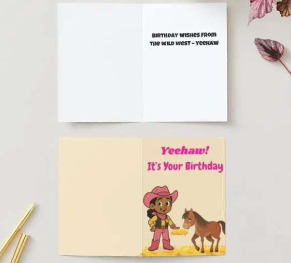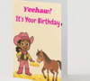 Downloadable- Printable Cowgirl Foldable Birthday Card 5x7 in size
