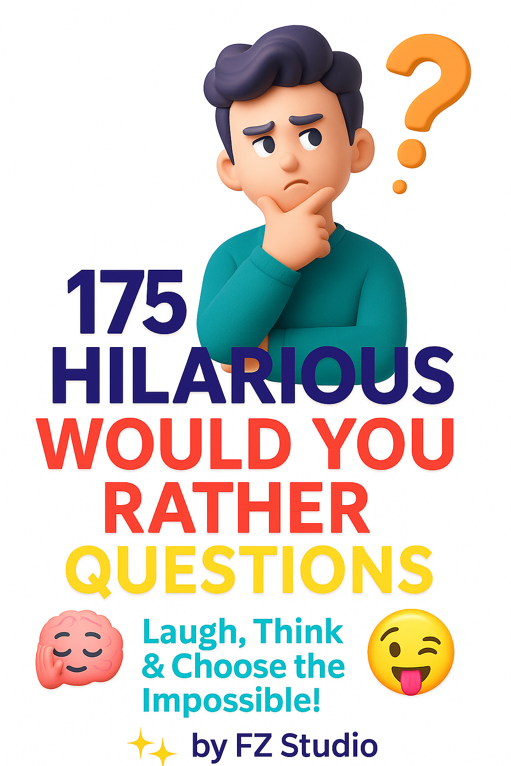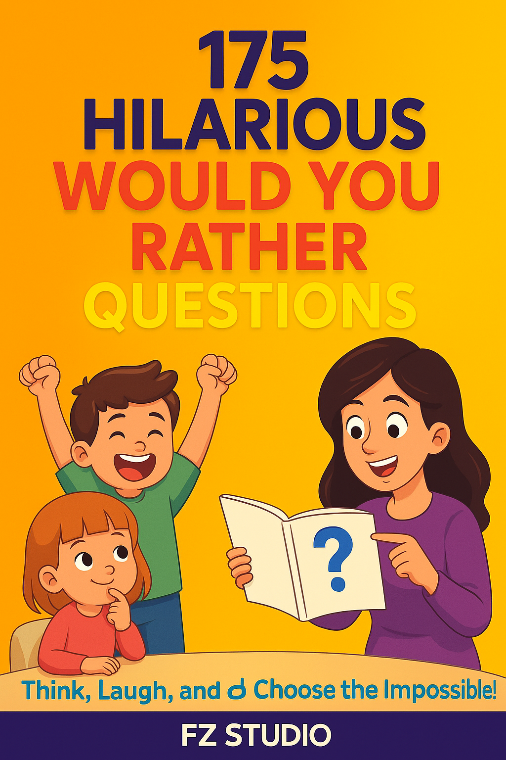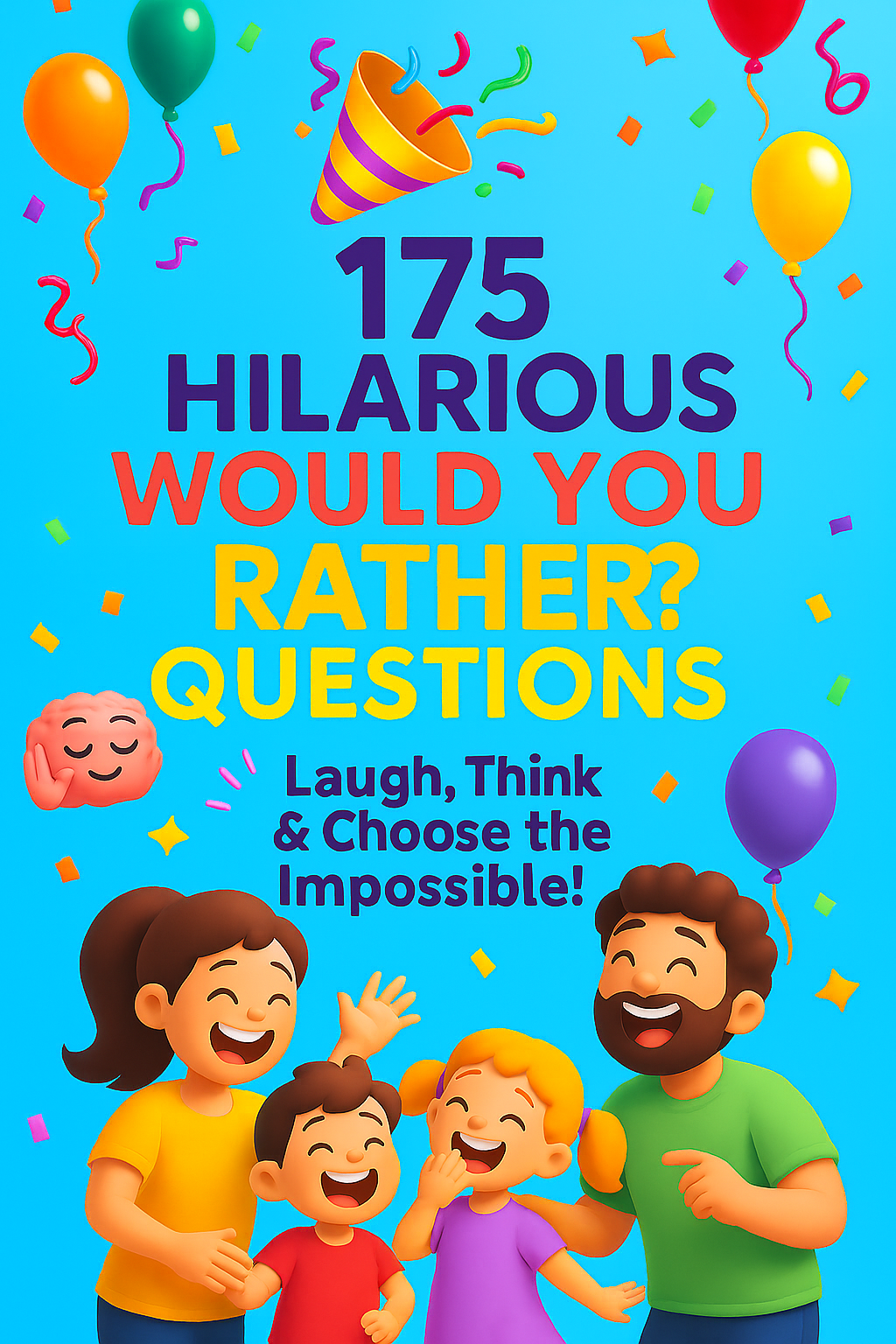 175 hilarious “Would You Rather” questions designed for kids and families. Perfect for road trips, family game nights, classroom icebreakers, or parties. Instant PDF download – print and play anywhere!