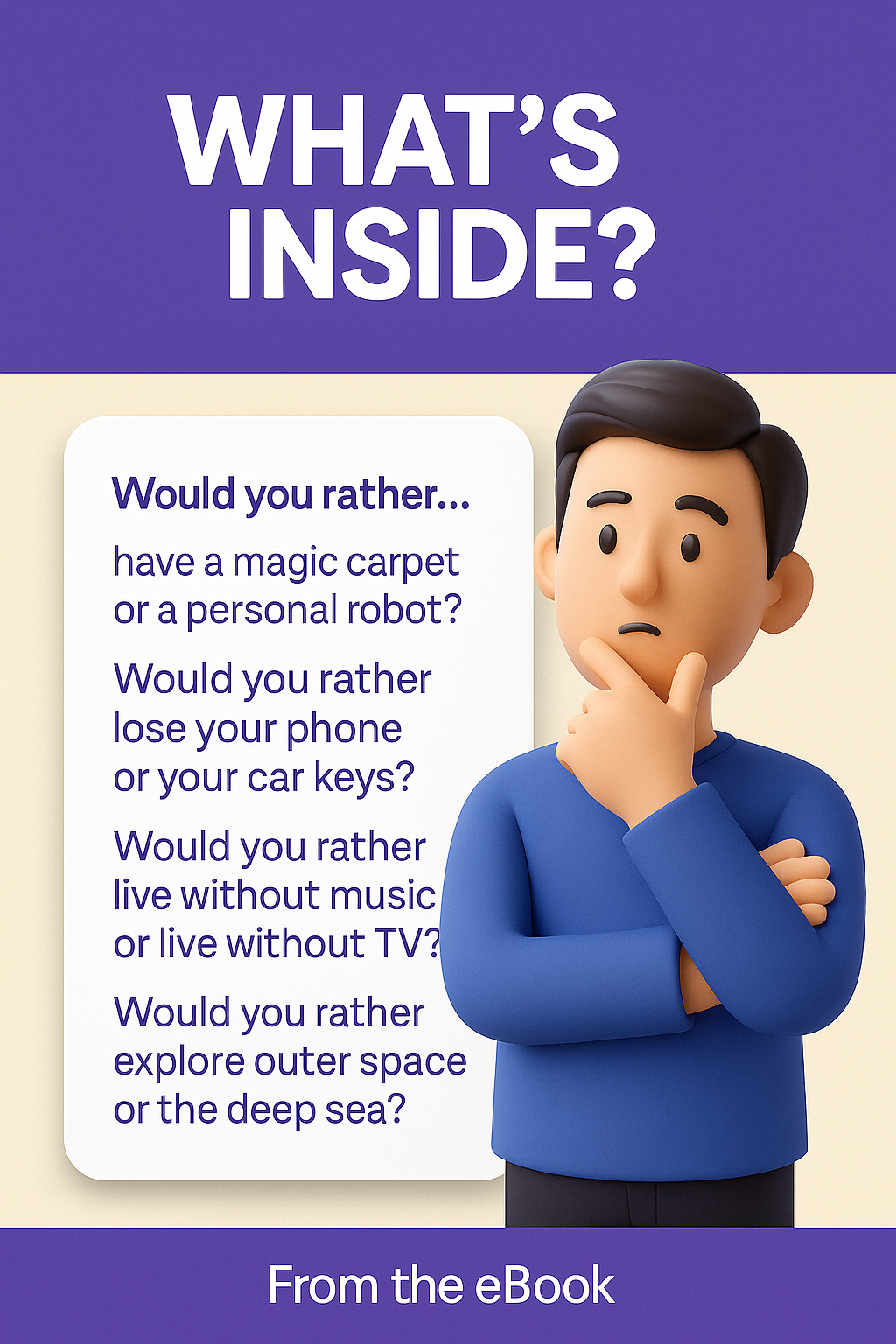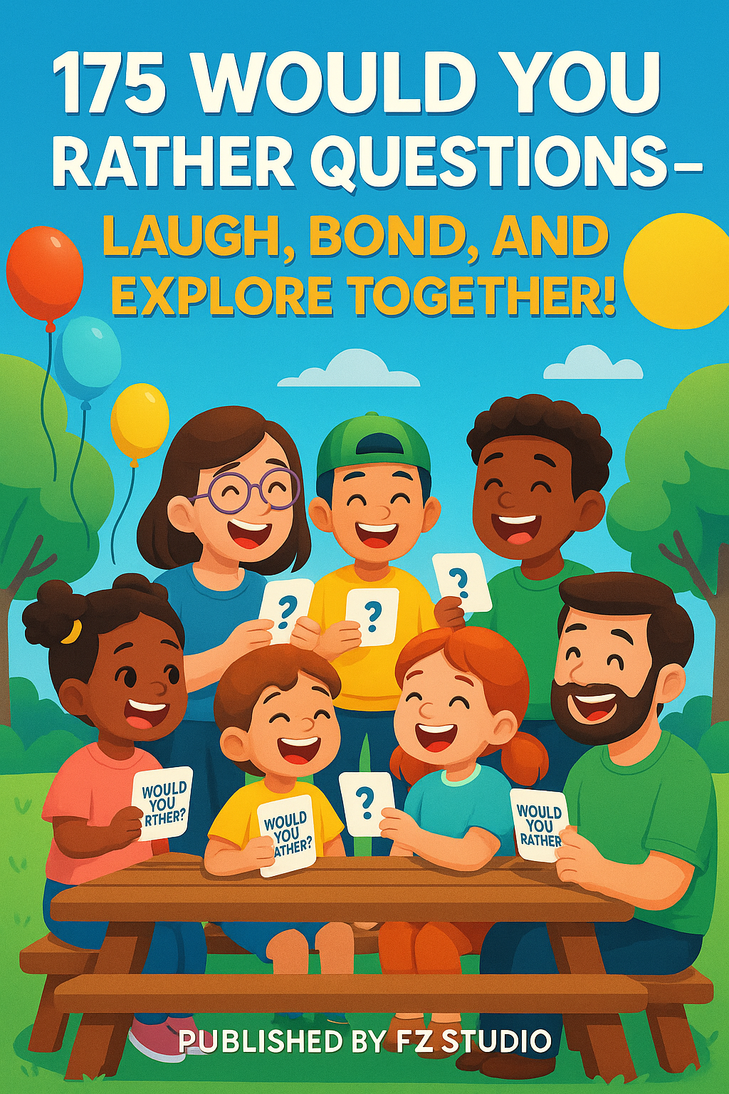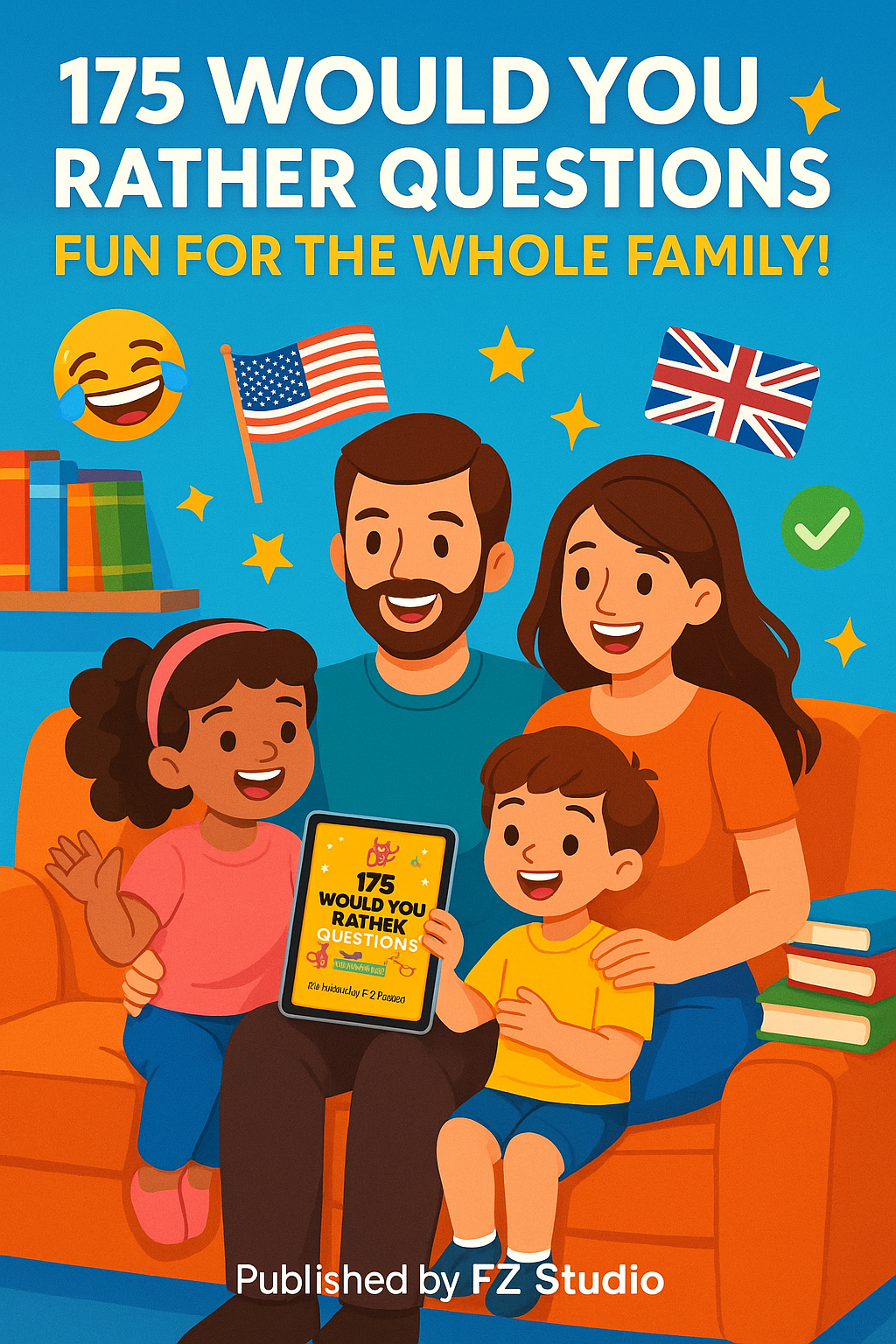 175 hilarious “Would You Rather” questions designed for kids and families. Perfect for road trips, family game nights, classroom icebreakers, or parties. Instant PDF download – print and play anywhere!