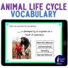 Students will review the following vocabulary words: life cycle, life span, metamorphosis, clone, heredity, instinct, learned behavior, fertilization, regeneration.