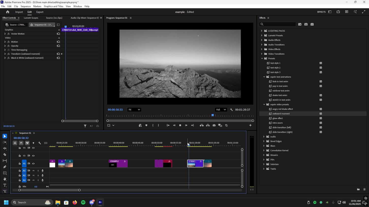 Bring clean motion and personality to your edits with this Premiere Pro 2025 preset pack. This bundle includes 5 text animations and 6 video effect presets designed to add impact, energy, and clarity to your videos in just a few clicks. Whether you’re making short-form content or full-length videos, these presets help you level up your edits fast. Each preset is drag-and-drop and easy to tweak, making it perfect for beginners, creators building their first kit, or editors who want reliable go-to effects without overthinking insane keyframes.