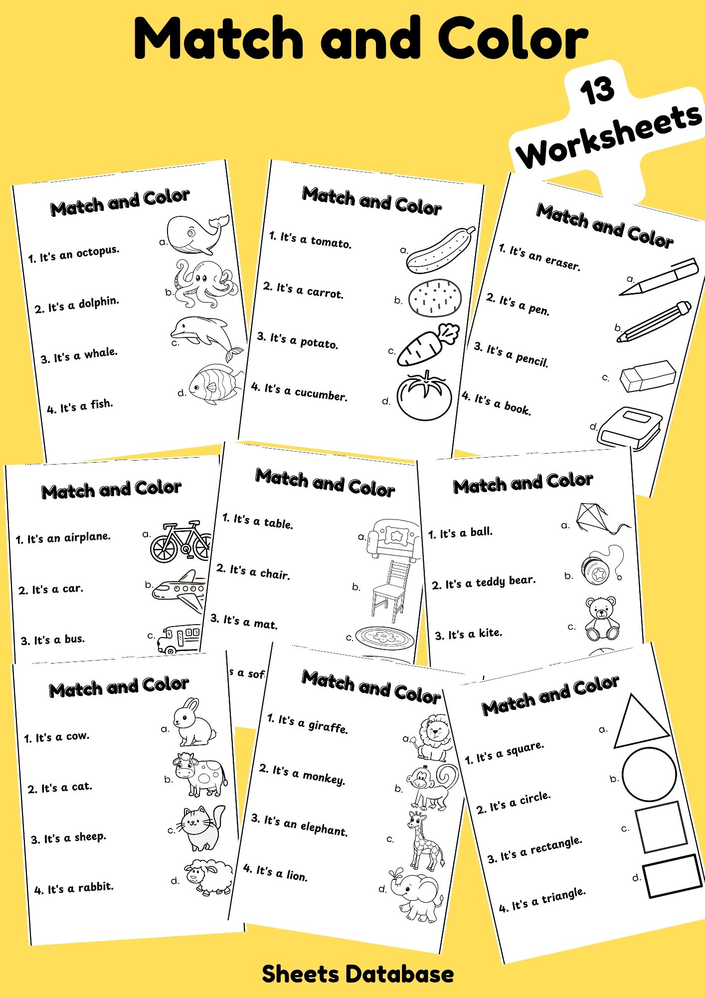 These Match and Color worksheets help young learners develop early vocabulary and recognition skills in a fun and engaging way.