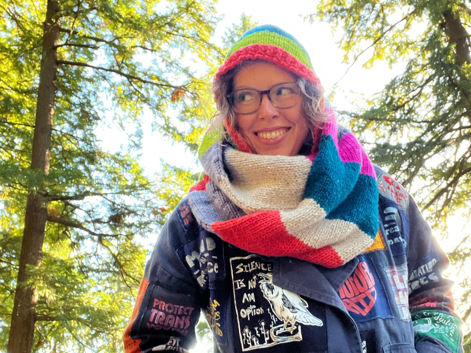 There are two files for the zine: color pages for reading on a screen (basically a mini-ebook), and a black & white pdf to be printed and folded into a zine. See this video for how to print/cut/bind it—it’s the same exact method, but with each page cut in half instead of into thirds like in the video. (Here are written instructions: print even pages only, flip on the long side the same as printing a normal 2-sided document, then print the odd pages. Keep pages as they are, with the cover page facing down, and cut the three pages in half across the center, with a paper cutter or scissors—fold them in half to find the center if needed. Let the side with the cover on the bottom fall to the table, then set the other half on top of it—you should see pages 12-13 on top now. Fold in half with the cover in front and pages 12-13 in the center inside. All pages should now be in order! Bind with a long-arm stapler or with needle & thread, or carefully use a sewing machine with the longest stitch length.)