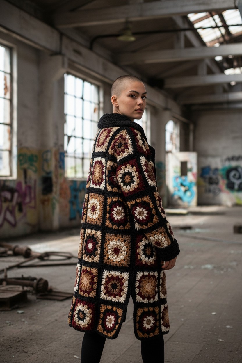 Create a timeless granny square coatigan with this detailed crochet pattern PDF.