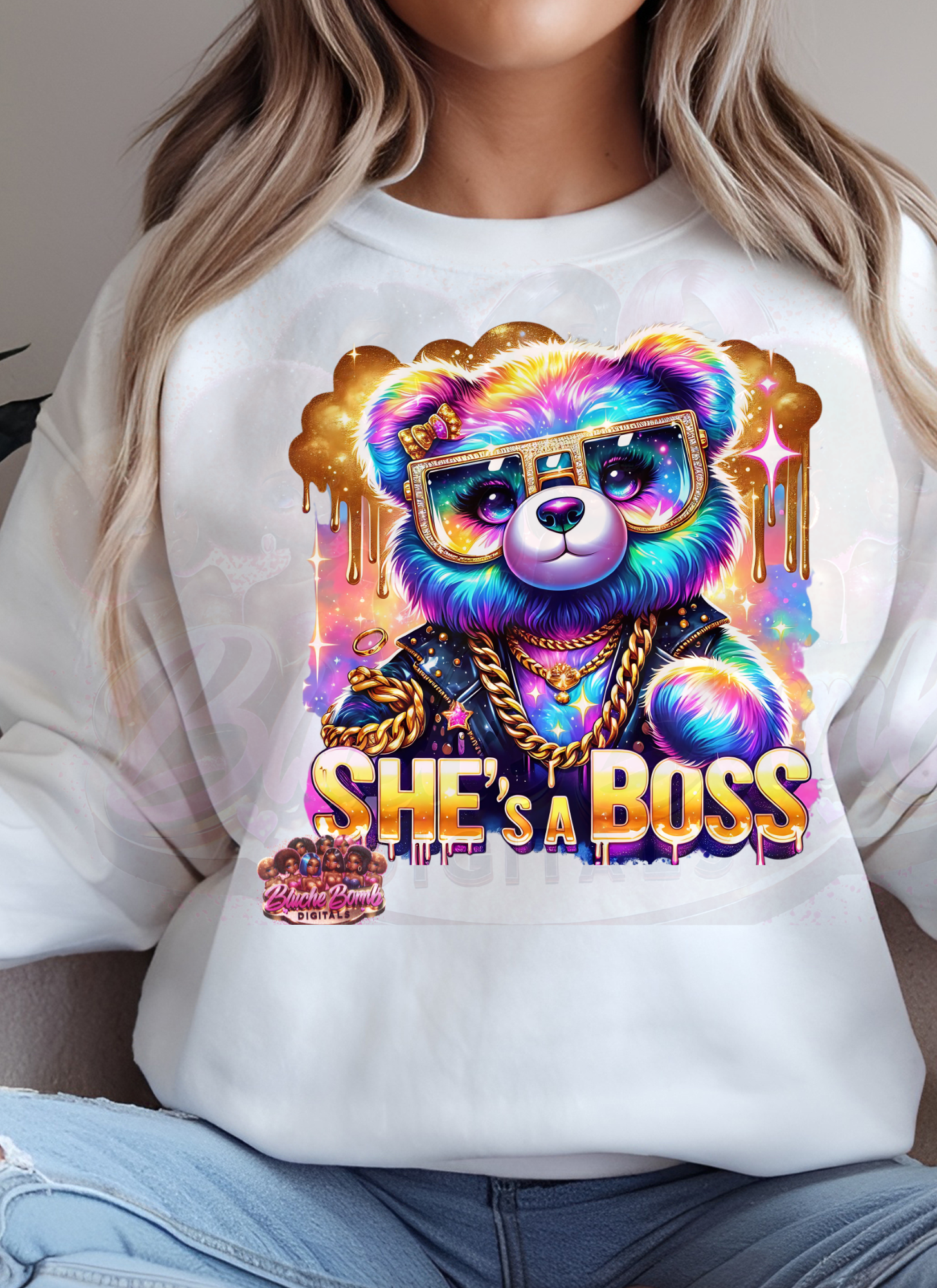 Transform your projects with this stunning, vibrant design featuring a rainbow-colored teddy bear with gold chains and sunglasses! Perfect for boss babes, creatives, and entrepreneurs who love standing out. Whether you're crafting T-shirts, mugs, tote bags, or wall art, this high-quality PNG file will add personality and confidence to your creations.