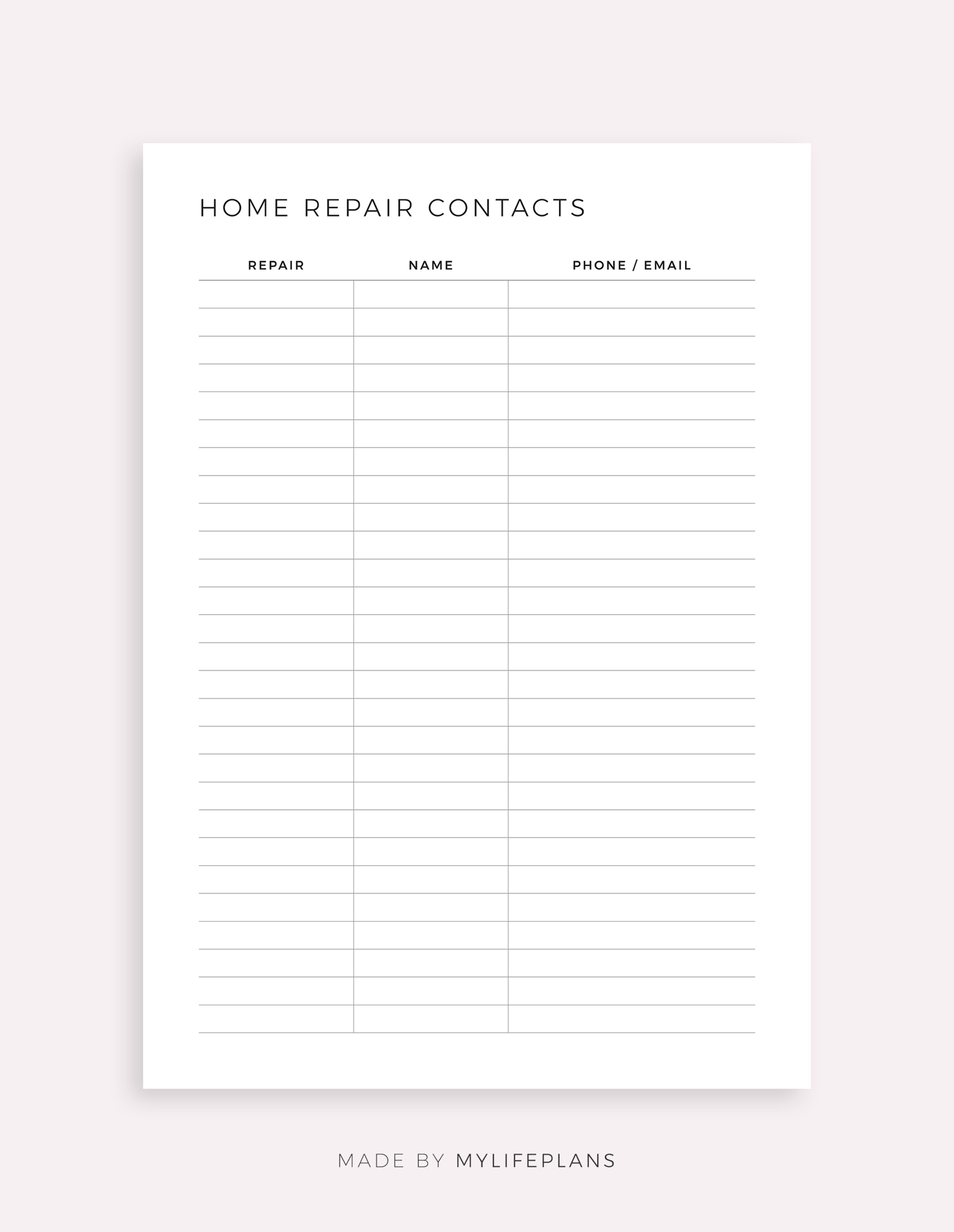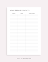 This is a printable home repair contacts template — just download, print, and start using it right away.