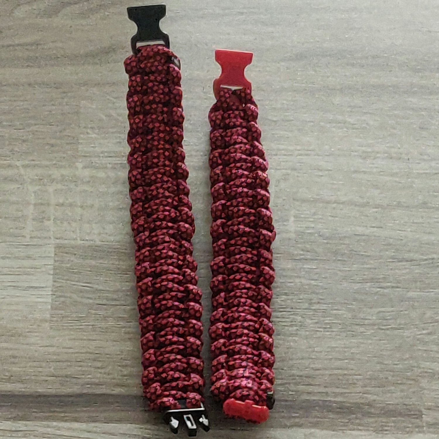 This is more than just a bracelet—it's essential EDC (Everyday Carry) survival gear. Each bracelet is hand-braided from 100% genuine 7-strand Paracord in a distinctive and popular red and black pattern. Perfect for outdoor enthusiasts, hikers, campers, and anyone who values preparedness.