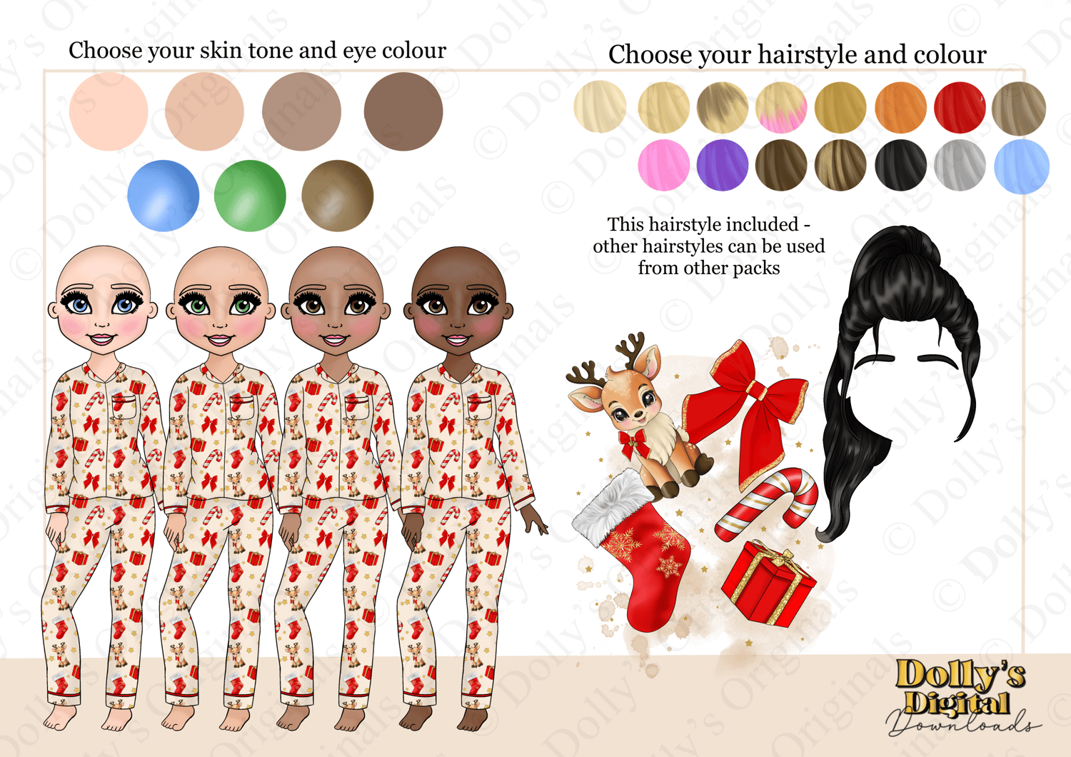Instant digital download of our Prancer Reindeer Pyjamas Teen Dolly Character Bundle PNG (29 PNG’s)