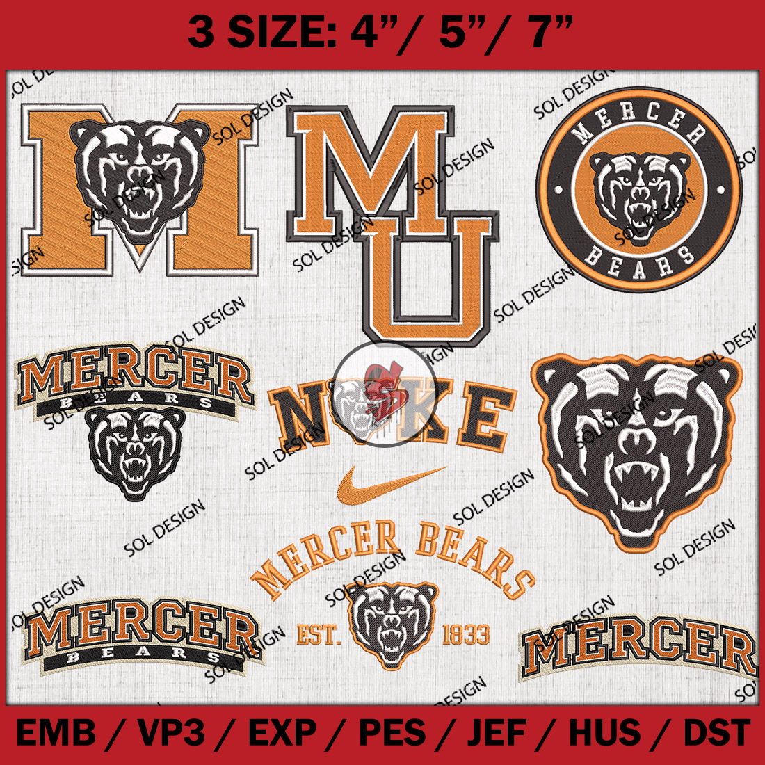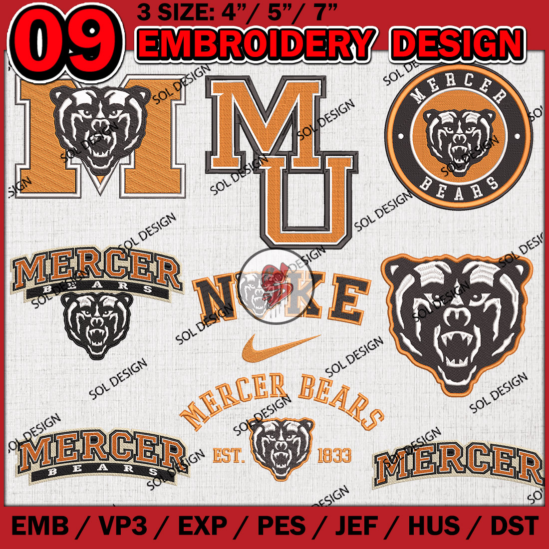 9 Mercer Bears Bundle Embroidery Files, College Football Embroidery Designs, NCAA Mercer Bears Machine embroidery Design Bundle, Ncaa Mercer Logo bundle, Digital Download