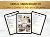 ⭐ This digital vision board kit includes a guide, photos, clipart, and inspirational quotes, which allow you to manifest your dreams and desires.