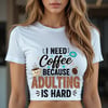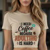This is a high-quality digital file featuring the "I Need Coffee Because Adulting is Hard" design. It's the perfect option for adding a touch of humor to your personal projects.