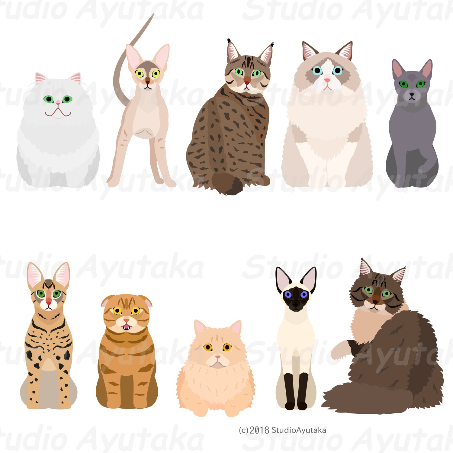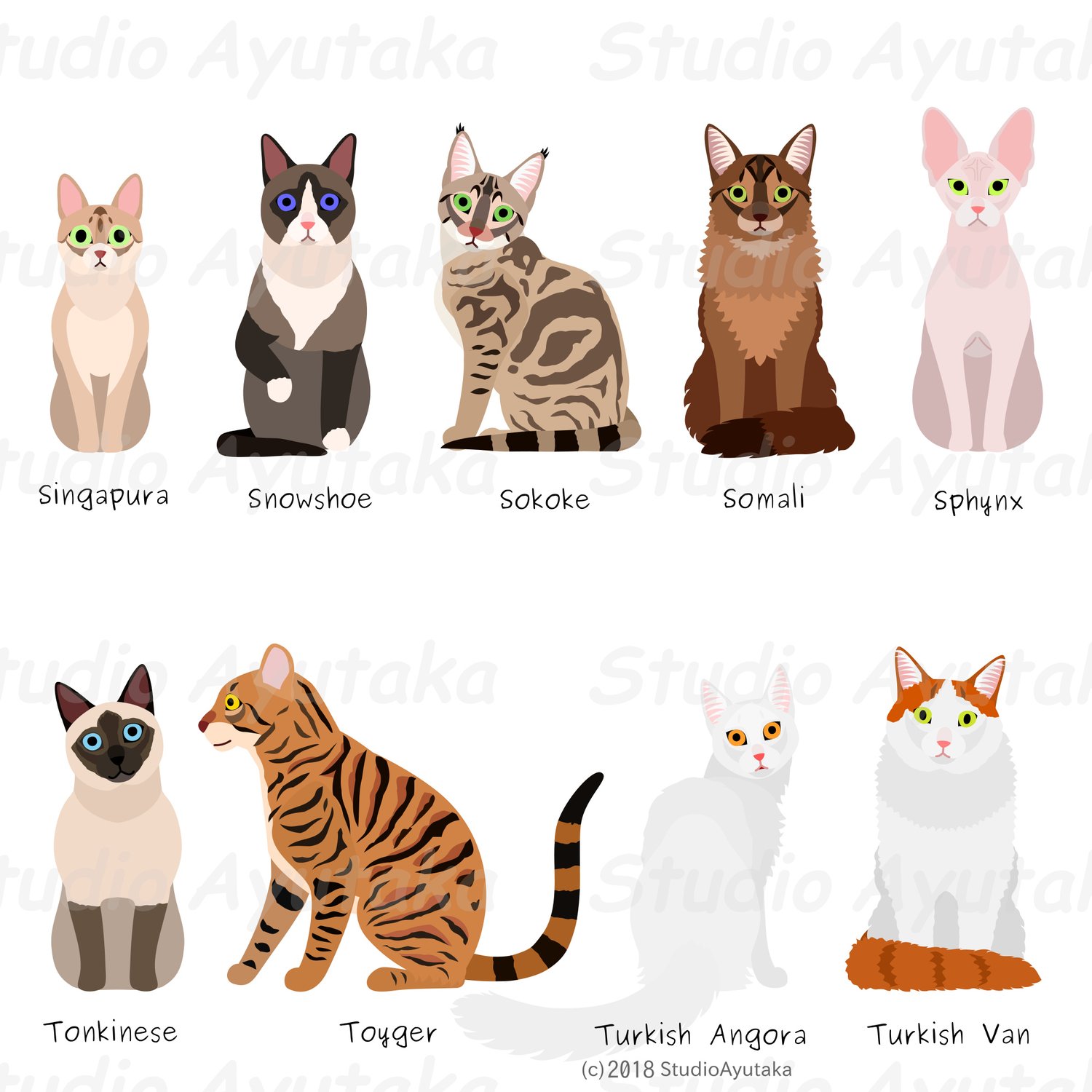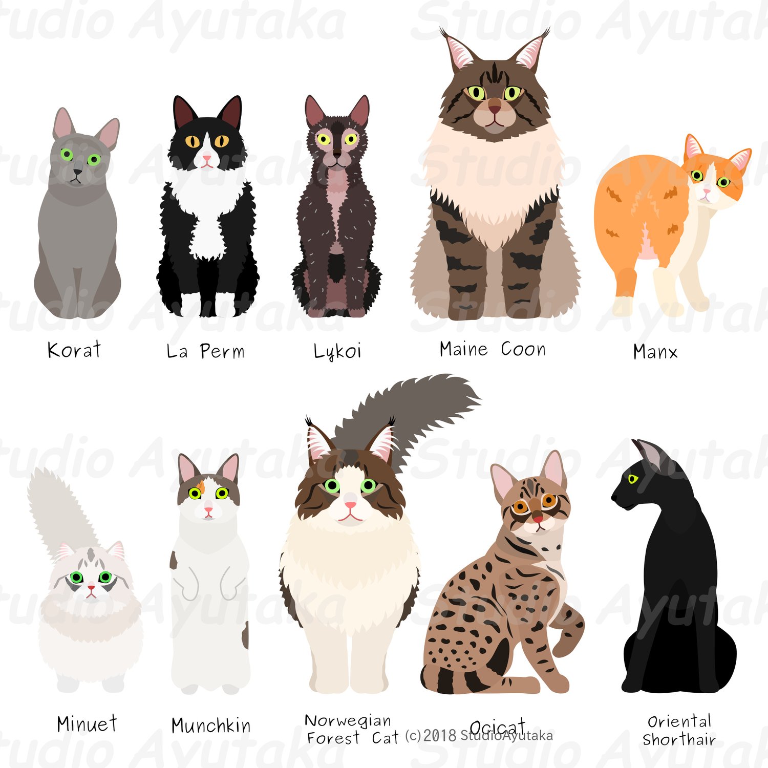 PNG×49(1 png has 1 cat, without breed names), 300dpi, RGBcolor, transparent back, longest side w:111mm(1303px) h:133mm(1567px)