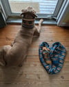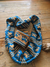 For our four legged furry friends, a fashionable cowl and for their human companion an opposite colors Infinity scarf. This PDF file contains knitting directions, either written out or charted for a human infinity scarf and a dog cowl in adjustable sizes from extra small to extra large. Knitting Pattern for the hat will be available separately.
