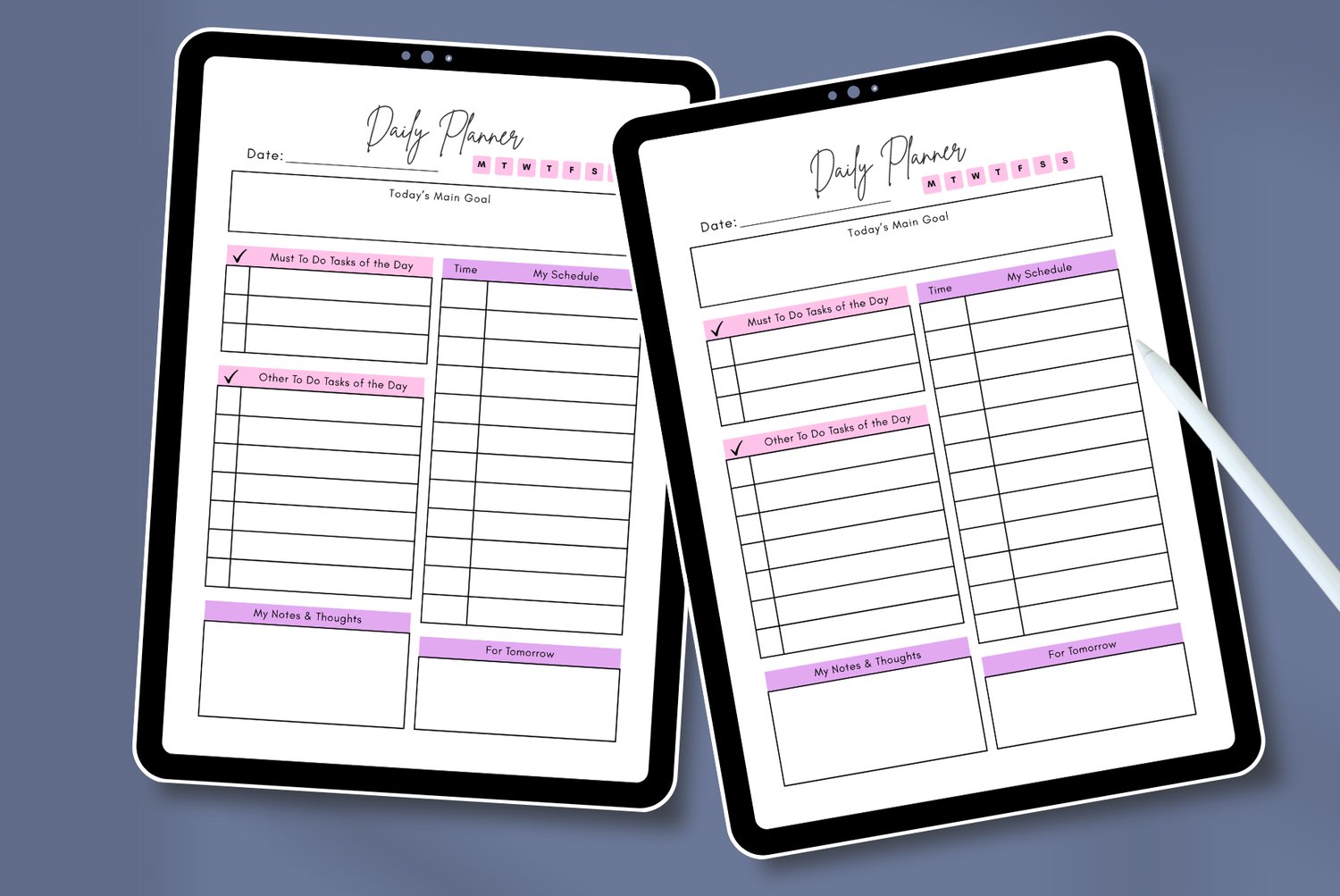 Aesthetic Daily Planner Template | Minimalist Productivity Planner | Printable & Digital Undated Daily Schedule Organizer | Boost Focus, Time Management & Self-Care