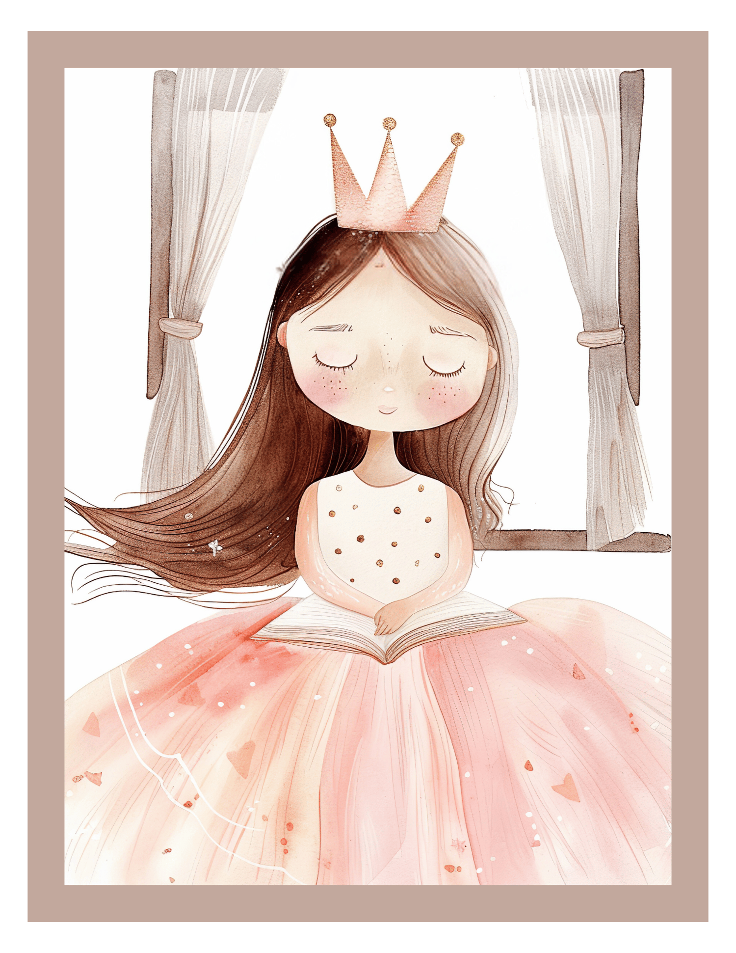 This delightful little princess poster set adds a touch of magic to any room. It includes both framed and frameless versions, offering versatility. Use the framed one for a sophisticated finish or the frameless one for a more carefree storybook charm.