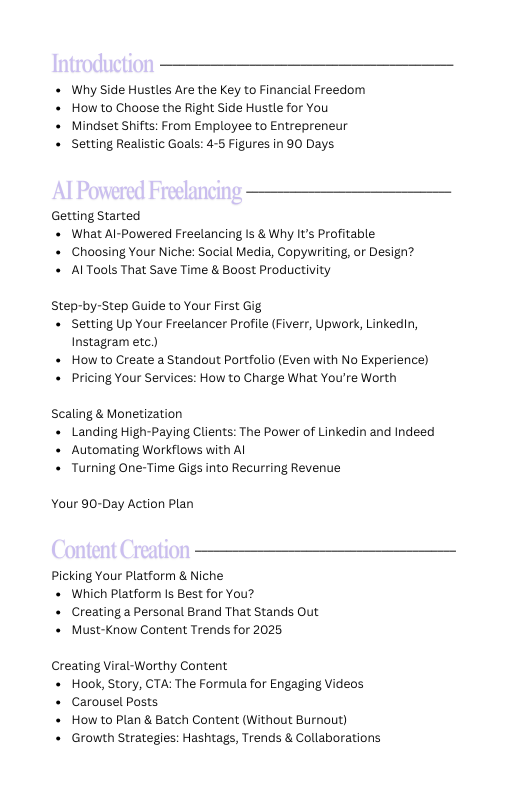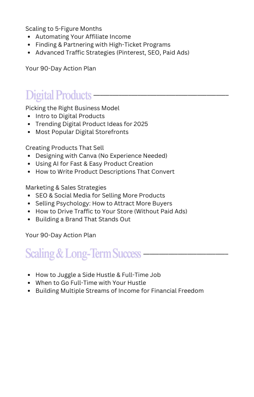 The 90 Day Side Hustle Guide is your no-fluff, step-by-step blueprint to launching a profitable online hustle from scratch — even if you have zero followers, no tech skills, and a full-time job.