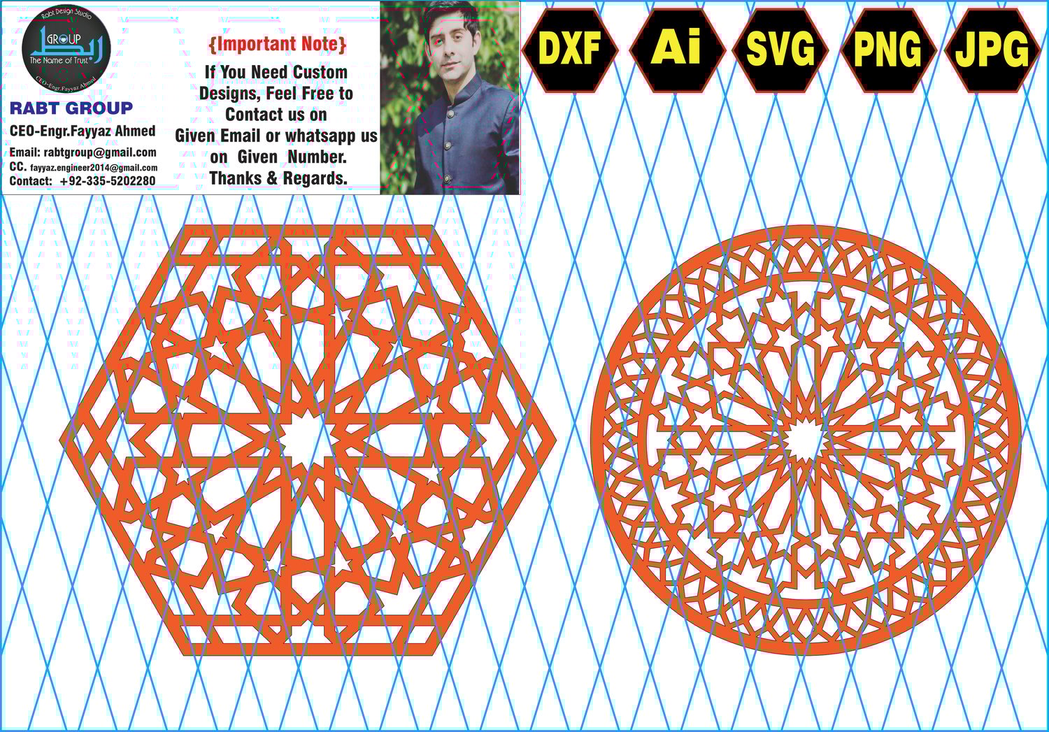At Rabt Group, led by CEO Engr. Fayyaz Ahmed, we specialize in premium digital designs for CNC cutting, home décor, and artistic projects.