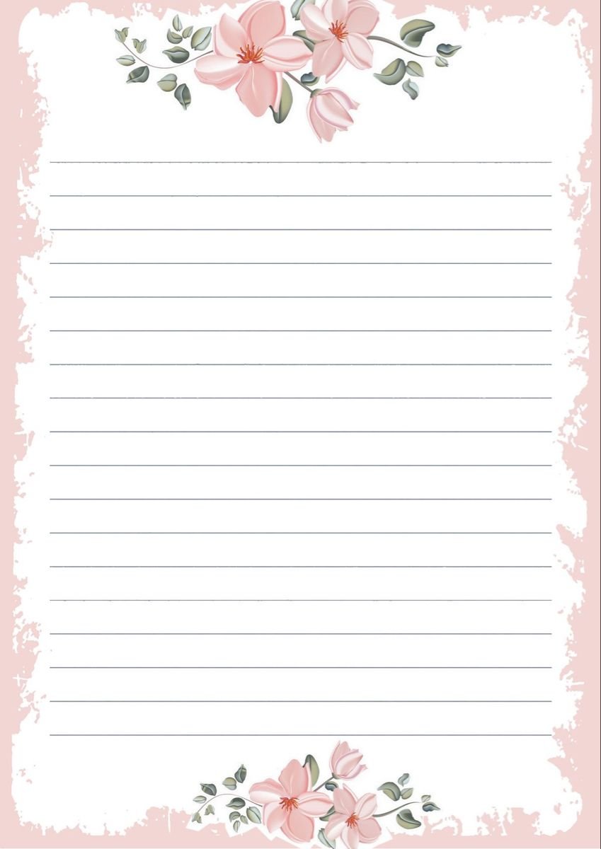 Stationery Paper with Pink Flowers on the Top and Bottom Edges.