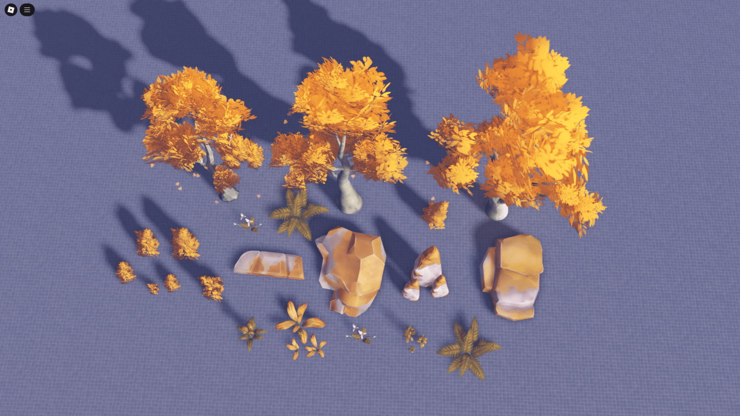 Roblox Stylized Autumn Nature Pack – Fantasy Trees, Plants & Rocks (20 Assets)