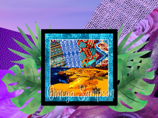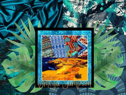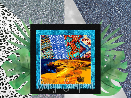 Cali Southwest Landscape of Ocean Shore with Patchwork sky of Southwestern Mixed Media Collage Digital Art Print