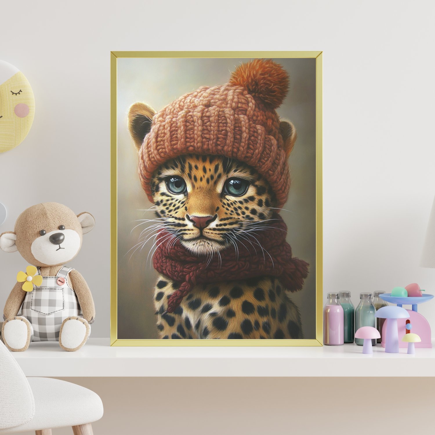 Cute Leopard in winter hat