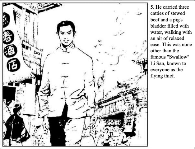 5. He carried three catties of stewed beef and a pig's bladder filled with water, walking with an air of relaxed ease. This was none other than the famous "Swallow" Li San, known to everyone as the flying thief.