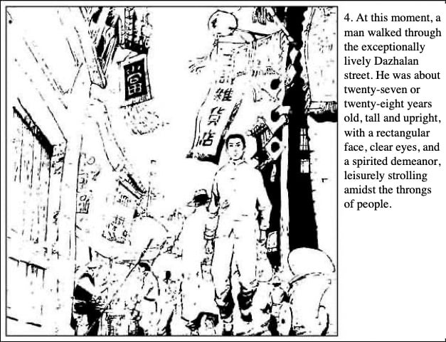 4. At this moment, a man walked through the exceptionally lively Dazhalan street. He was about twenty-seven or twenty-eight years old, tall and upright, with a rectangular face, clear eyes, and a spirited demeanor, leisurely strolling amidst the throngs of people.