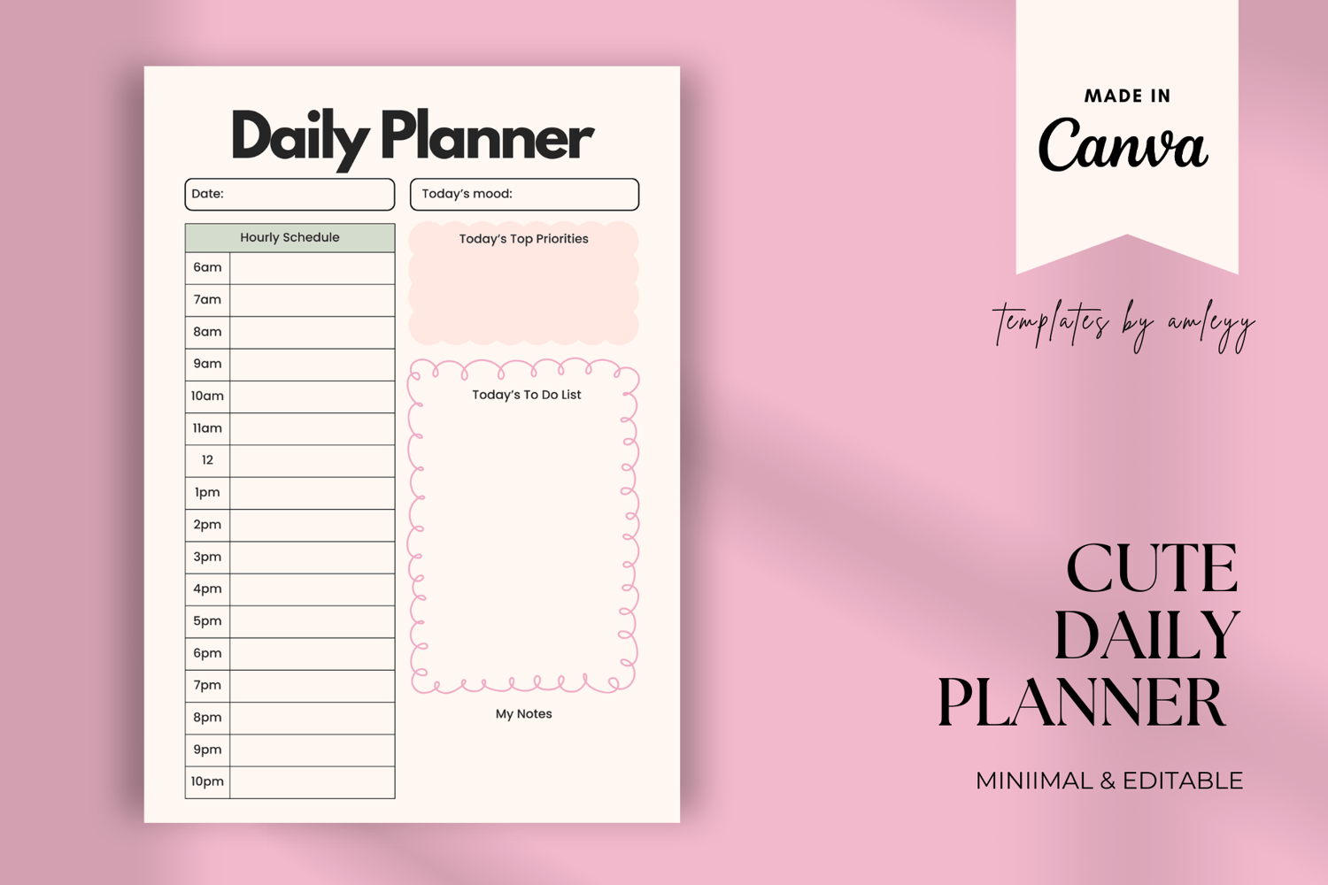 Brighten up your daily routine with this Cute Daily Planner Template, designed in Canva with a playful and pastel aesthetic. Perfect for students, busy moms, creatives, or anyone who loves cute stationery, this daily planner keeps your schedule organized in the most adorable way possible!