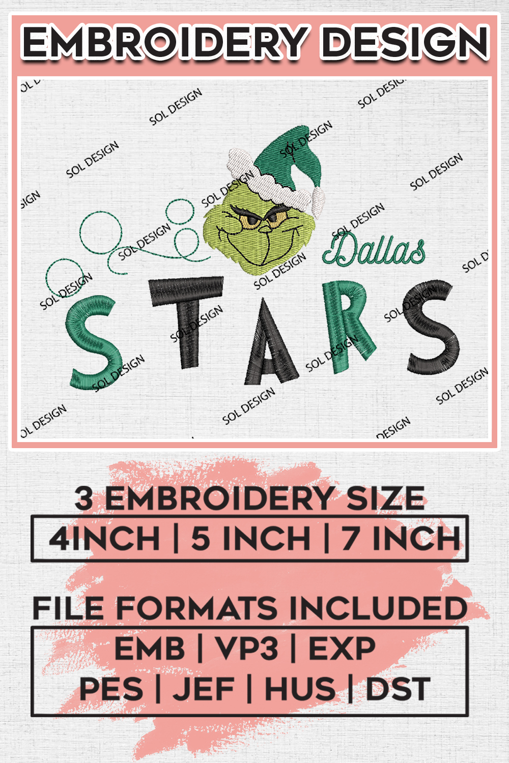 Christmas Grinch x Dallas Stars NHL Team Embroidery Designs, Grinch Embroidery Files, NHL Stars Hockey Team Logo Embroidery, Merry Christmas Machine Embroidery Design, Digital Download