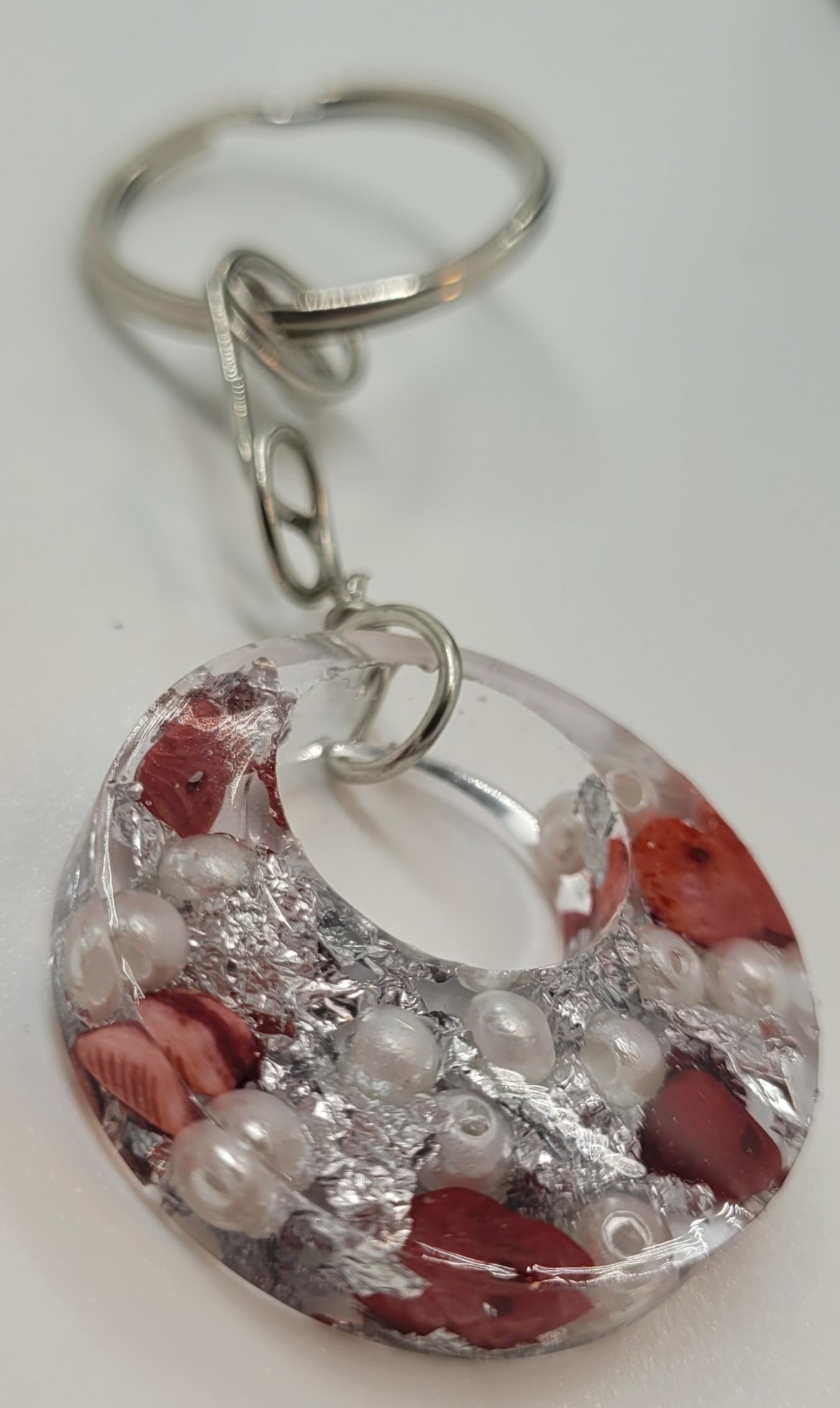 Round Pearl & Coral Silver Keychain - Hand Crafted