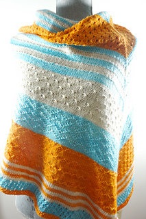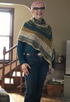 “All Points South” is meant to drape down over your shoulders to some degree but not necessarily fit all the way over your shoulders as a poncho would. Two sizes are available and is designed to fit everyone. You can wear it bunched up like a cowl or more flat - it will magically hit you just right and fold over itself/ruche up to keep you toasty. It will look more poncho-y on some and more cowl-y on others depending on shoulder and bust size.