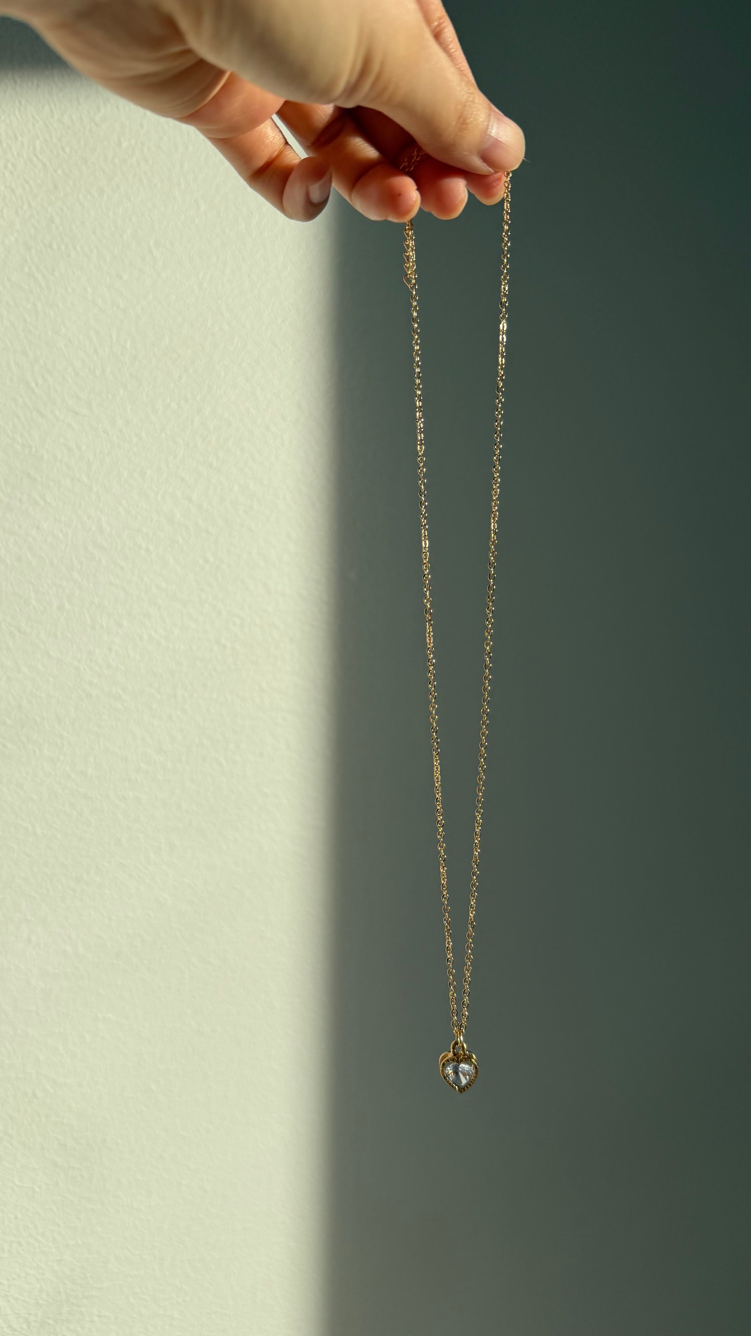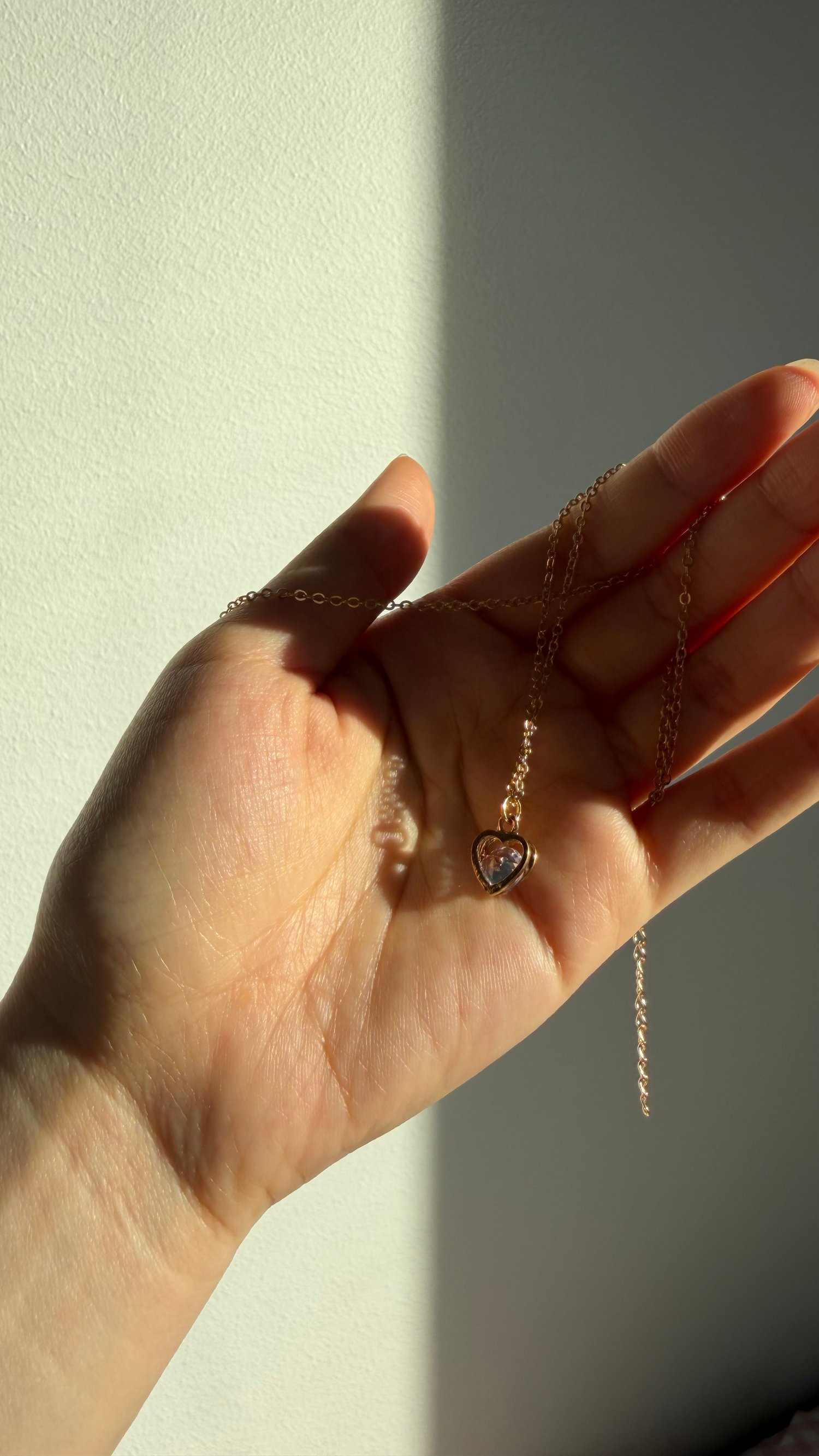 A refined necklace designed with intention and softness. The heart pendant rests gently against the skin, offering a sense of closeness and calm rather than bold statement. Paired with a stainless steel gold chain, this piece is understated yet meaningful — made to be worn daily and treasured over time.