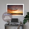 Experience the serene beauty of a tropical sunset from the comfort of your home. This captivating image showcases a single palm tree silhouette against a breathtaking backdrop of vibrant orange and yellow hues as the sun dips below the horizon. The tranquil waters and clear skies promise to bring a touch of tranquility to any space, making it an ideal addition for those looking to infuse their environment with nature’s splendor..