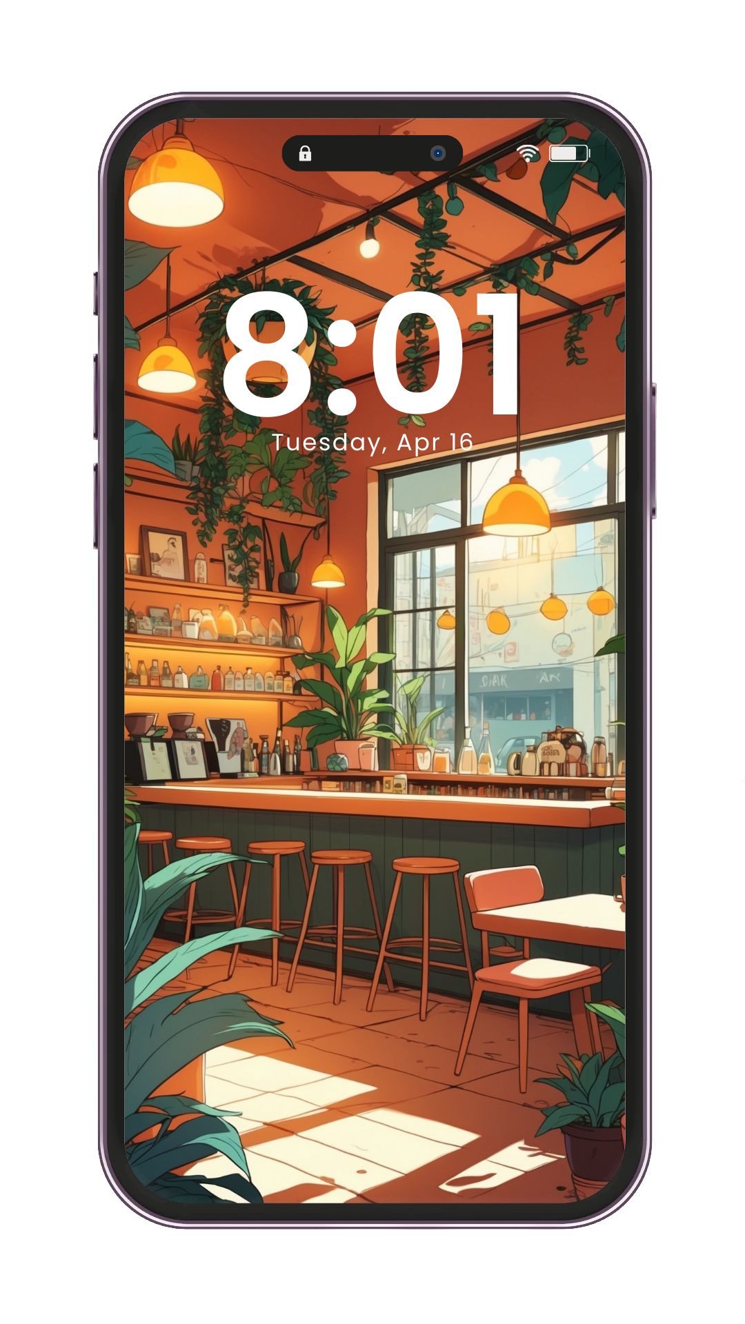 This wallpaper duo makes you feel like you're at a beautiful coffeeshop while on vacation far from home. Has a warm aesthetic that calms your mind and it has so many details that draw the viewer in. Plus your purchase comes with two wallpapers, so you can choose between the bright exterior view or the warm interior view. Hope you and your phone enjoy!