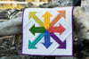 This traditionally pieced pattern creates a fun color effect thanks to blocks in two different orientations. While this pattern was designed with a rainbow selection of fabric in mind, try it with a more limited color palette as shown in the example, too! Choose from six quilt size options.