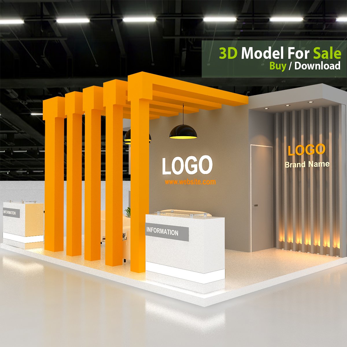 This professional 3D booth model is designed for exhibitions, trade shows, expos, fairs, and event displays.