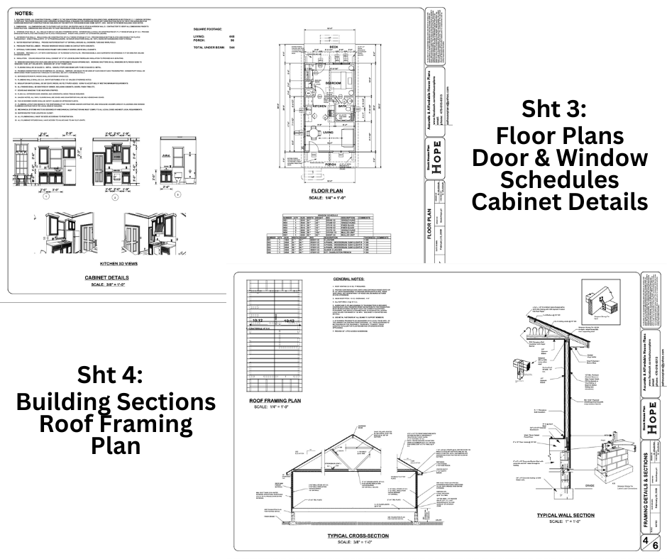 * Plans may also include 3D views, ceiling framing details and other applicable detail drawings pertinent to that plan