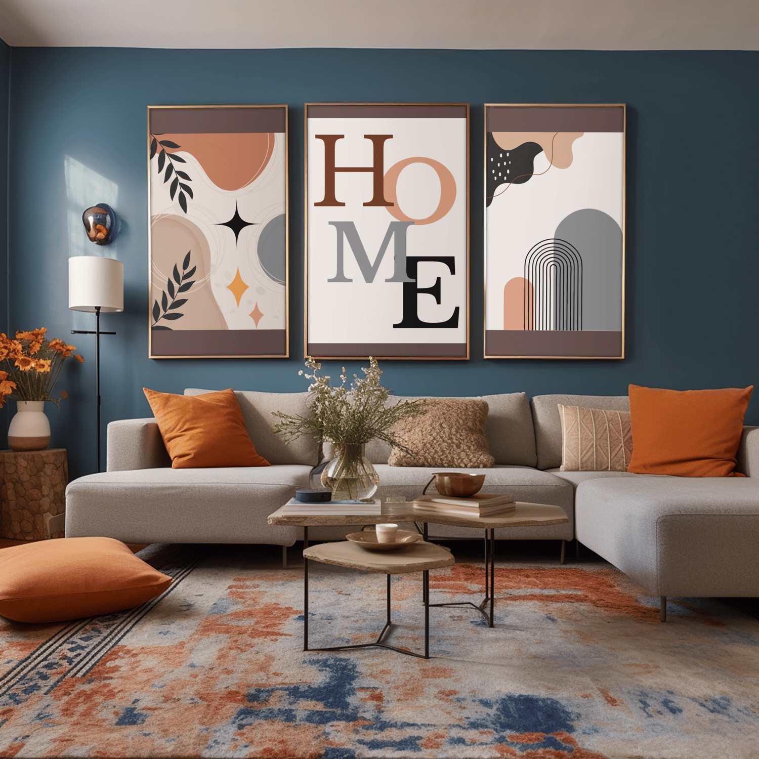 HOME Wall Art Set of 3 – Modern Boho Printable Decor, Abstract Mid-Century Wall Art, Warm Earthy Tones, Digital Download for Dining Room & Living Room