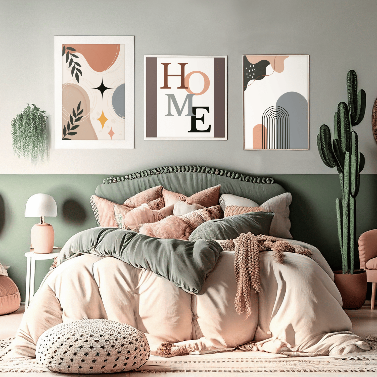 Upgrade your space with this Modern Boho “HOME” Wall Art Set, designed in warm earthy tones and elegant mid-century abstract shapes.