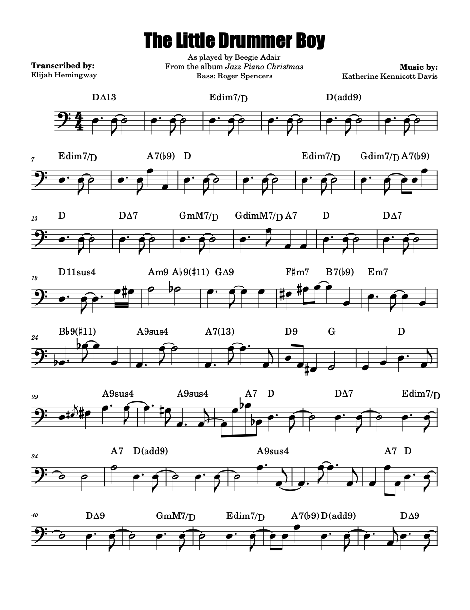 The Little Drummer Boy - Beegie Adair (Piano and Bass Score)